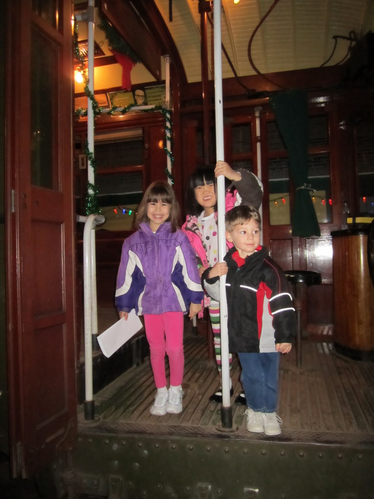 The kids got up early and headed off to Sunday School. When they got home, I dressed them up and we headed over to Heberts Candy Mansion for a picture with Santa. Santa was a grump! However, we got a few photos. None of them were great, but at least they got to sit on Santa's lap. They had the night before, but those photos were terrible. After we went to Heberts, we dashed to Elsa's to get me some soup. Never been there before. Not going again. The soup was horrible. Bill got sick from his soup. We then grabbed McDonalds so we could dash home and put Manny and Yamira down for a nap. They got to nap for an hour before we woke them up. We then jumped in the car and headed off to Connecticut. I know, back to Connecticut! We went to the trolley museum. We met Mrs. Rebecca and her son Matthew there. We had a great time. We walked through the trolley museum, sat on Santa's lap, took a trolley ride through the lights and then took another trolley ride called a sleigh and went through the lights as well. That is an open trolley car and it was freezing. Me being Mom of the year forgot the kids hats and mittens. Needless to say, they were freezing. We all were. We had a great time and it was so good to be with our friends. We stopped at Cracker Barrel for soup to go and headed home. The kids didn't get into bed till after 10:00 pm. Again the two younger ones don't nap, so they were exhausted.